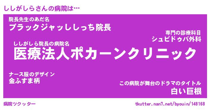 | ヘコむあだ名 | 『ししにゅー』『なまこ酢』『ししを』 |