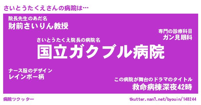 | 肩書あだ名 | 『さいとうたくえ店長』 |