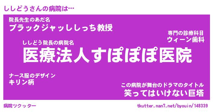 | ヘコむあだ名 | 『ししもー』『豆乳』『ししぷりん』 |