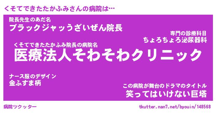 | 胡散臭い通販商品みたいなあだ名 | 『億万長者になれるブレスレット…その名も「くそてできたたかふみ」』 |