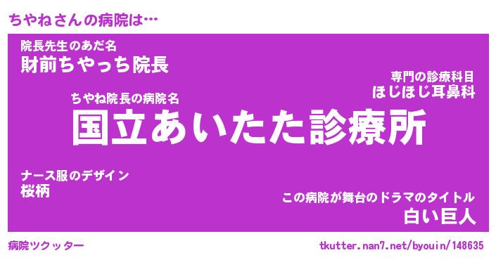 | ファンタジー風あだ名 | 『チヤフェル』『エターナルチヤネー』 |