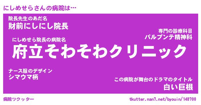 | ファンタジー風あだ名 | 『ニシフェル』『エターナルニシメセラー』 |