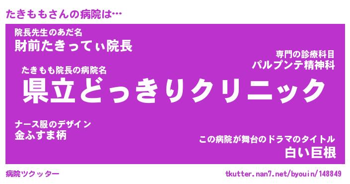 | 男性向けラノベタイトル風あだ名 | 『たきももの憂鬱』 |