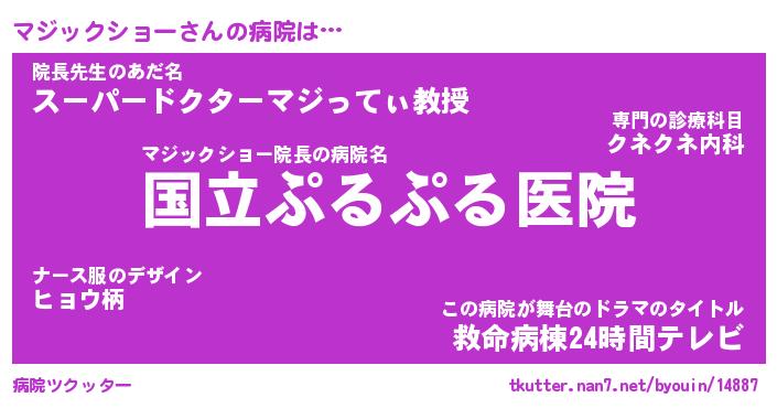 | 男性向けラノベタイトル風あだ名 | 『マジックショーの憂鬱』 |