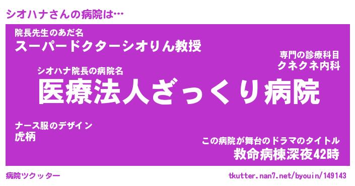 | 肩書あだ名 | 『シオハナ御曹司』『シオハナ大統領』 |