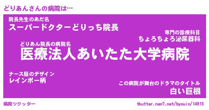 | 意味不明あだ名 | 『ペロリンどりあん』『永久保存どりあん』 |