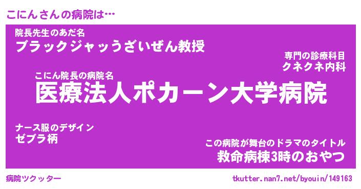 | ヘコむあだ名 | 『こににゅー』『豆乳』『こに太郎』 |