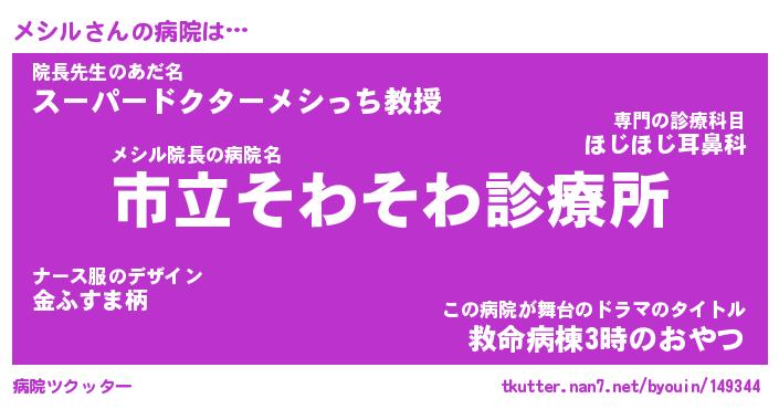 | 男性向けラノベタイトル風あだ名 | 『メシルの憂鬱』 |