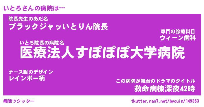 | 2回繰り返すあだ名 | 『いといと』『いいとと』『ぬるぬる』 |
