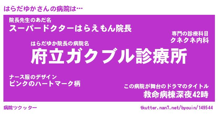 | ヘコむあだ名 | 『はらにゅー』『つくし』『はらっ子』 |