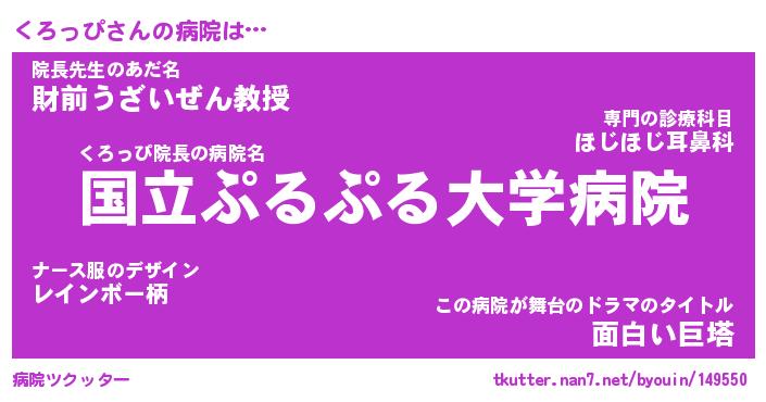 | 2回繰り返すあだ名 | 『くろくろ』『くくろろ』『いらいら』 |
