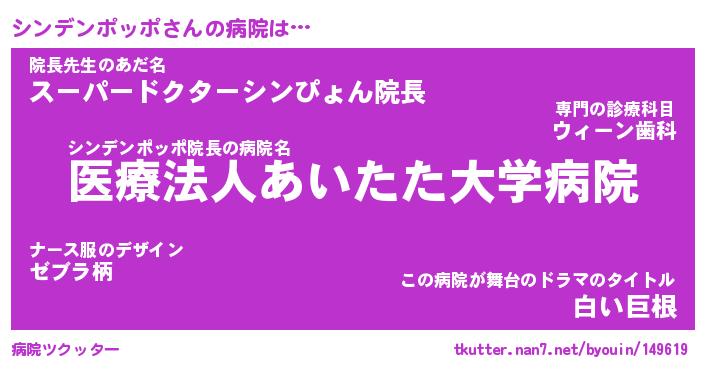 | 男性向けラノベタイトル風あだ名 | 『シンデンポッポアートオンライン』 |