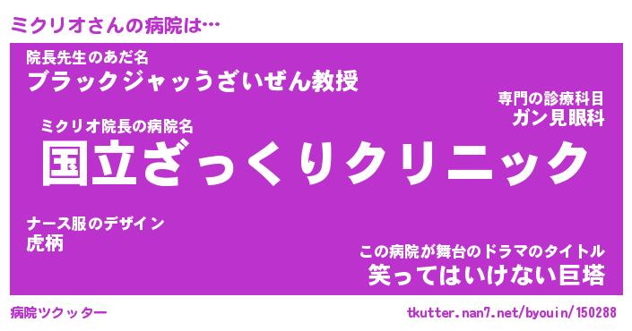 | ヘコむあだ名 | 『ミクっふぃ~』『なまこ酢』 |