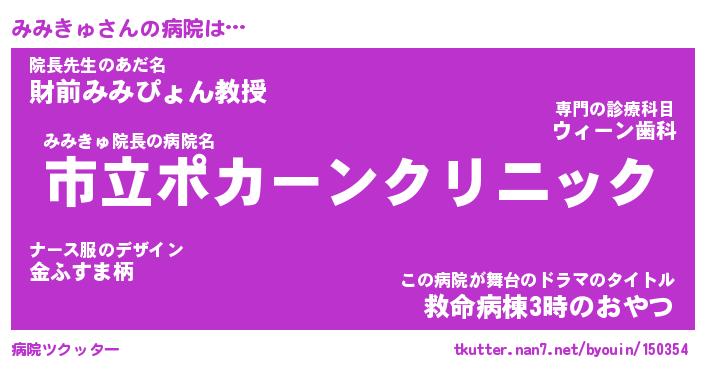 | 男性向けラノベタイトル風あだ名 | 『みみきゅの憂鬱』 |