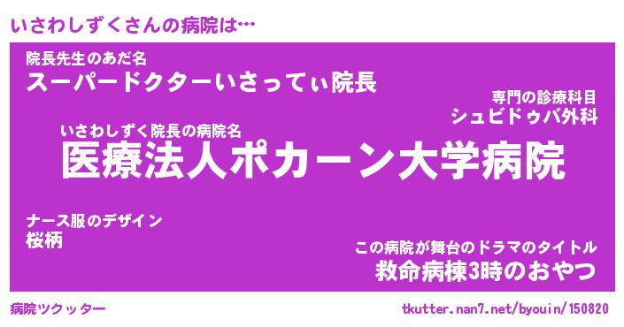 | ヒーロー風カッコイイあだ名 | 『スーパーイサワシズク』『黄金騎士イサ』 |