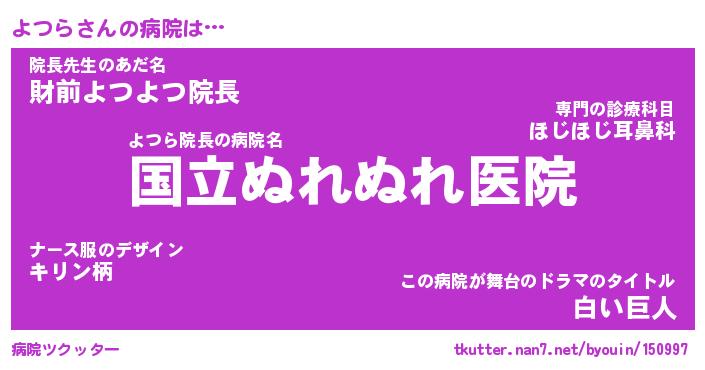 | 2回繰り返すあだ名 | 『よつよつ』『よよつつ』『ぬるぬる』 |