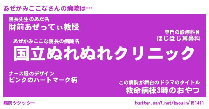 | 女子向けラノベタイトル風あだ名 | 『(仮)あぜかみここなのやんごとなき事情』 |