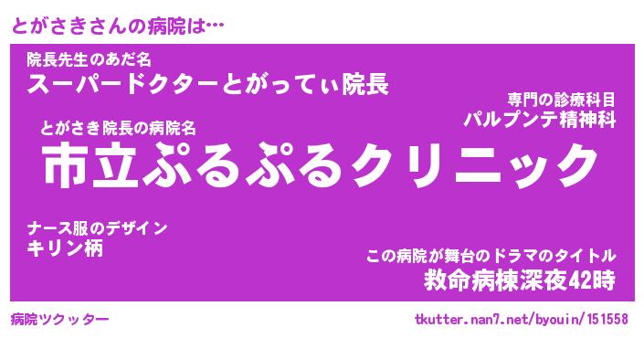 | ヘコむあだ名 | 『とがにゅー』『なまこ酢』 |