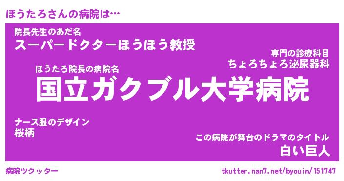 | 意味不明あだ名 | 『ペロリンほうたろ』『永久保存ほうたろ』 |