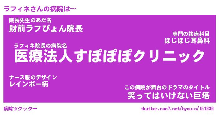 | 2回繰り返すあだ名 | 『ラフラフ』『ララフフ』『いそいそ』 |