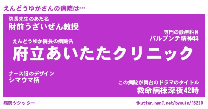 | 伝説のあだ名 | 『不死鳥のスナイパーえんどうゆか』 |