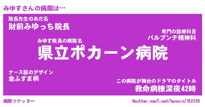 | ヘコむあだ名 | 『みゆにゅー』『つくし』『みゆ太郎』 |