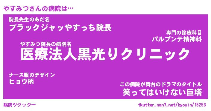 | 意味不明あだ名 | 『ペロリンやすみつ』『永久保存やすみつ』 |