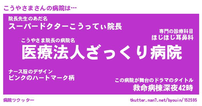 | 2回繰り返すあだ名 | 『こうこう』『ここうう』『うねうね』 |