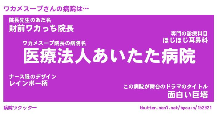 | ヒーロー風カッコイイあだ名 | 『スーパーワカメスープ』『銀牙騎士ワカ』 |