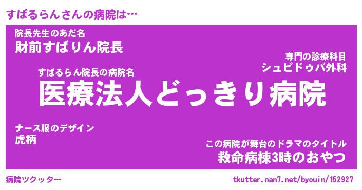 | 伝説のあだ名 | 『封印されしスナイパーすばるらん』 |