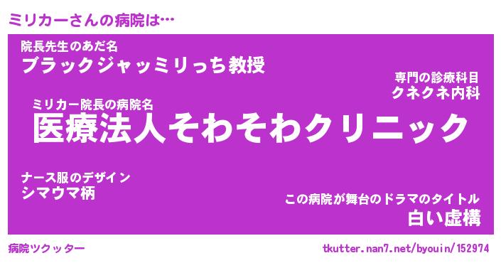 | 肩書あだ名 | 『ミリカーCEO』『ミリカー総理大臣』 |