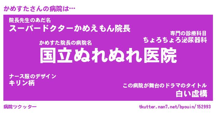 | 伝説のあだ名 | 『伝説のスナイパーかめすた』 |