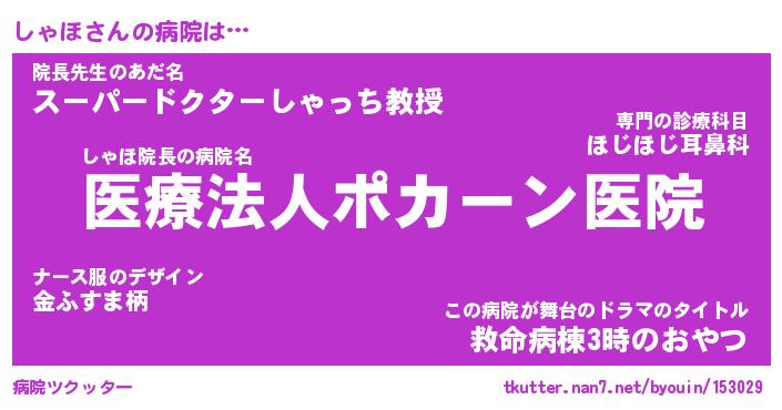 | ヒーロー風カッコイイあだ名 | 『スーパーシャホ』『ウルトラしゃほマン』 |
