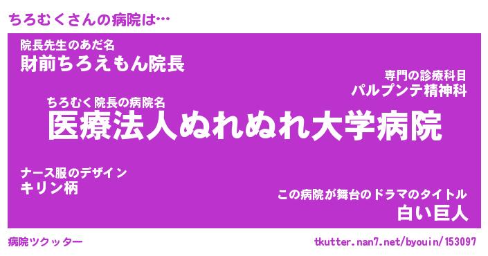 | 意味不明あだ名 | 『ペロリンちろむく』『永久保存ちろむく』 |