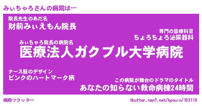 | ファンタジー風あだ名 | 『ミィフェル』『エターナルミィチャロー』 |