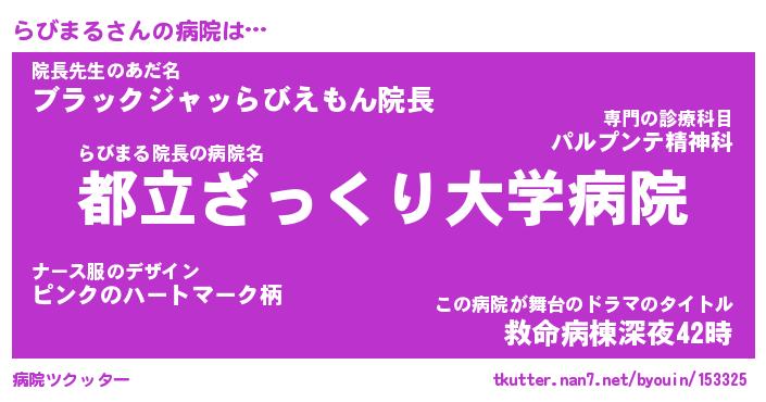 | 意味不明あだ名 | 『ペロリンらびまる』『永久保存らびまる』 |