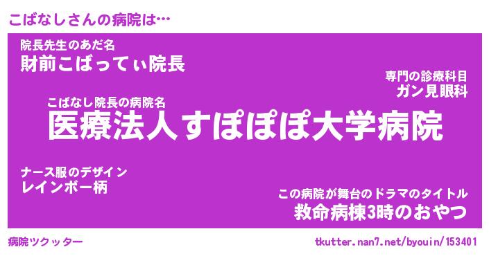 | ファンタジー風あだ名 | 『コバフェル』『エターナルコバナシー』 |