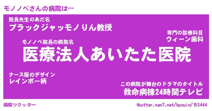| 意味不明あだ名 | 『ペロリンモノノベ』『永久保存モノノベ』 |