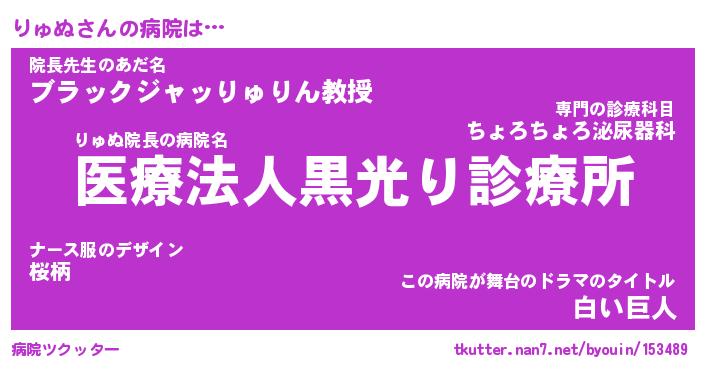 | ヘコむあだ名 | 『りゅにー』『なまこ酢』『りゅを』 |
