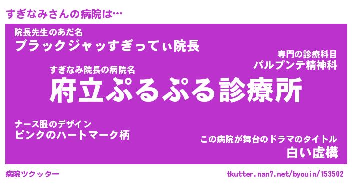 | 意味不明あだ名 | 『ペロリンすぎなみ』『永久保存すぎなみ』 |