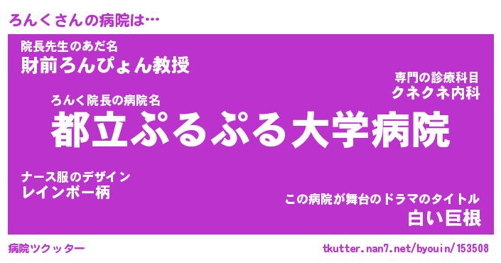 | ヘコむあだ名 | 『ろんにゅー』『レバニラ』『ろんお』 |