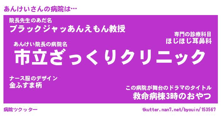 | 意味不明あだ名 | 『ペロリンあんけい』『永久保存あんけい』 |