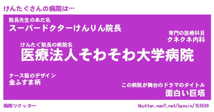 | 2回繰り返すあだ名 | 『けんけん』『けけんん』『おやおや』 |