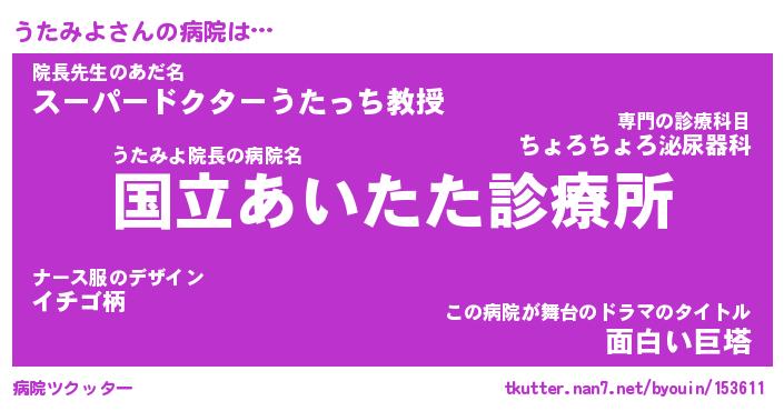 | 意味不明あだ名 | 『ペロリンうたみよ』『永久保存うたみよ』 |