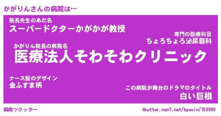 | 意味不明あだ名 | 『ペロリンかがりん』『永久保存かがりん』 |