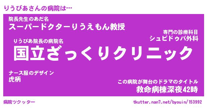 | 伝説のあだ名 | 『伝説のスナイパーりうびあ』 |