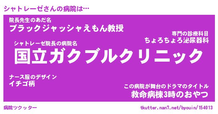 | 2回繰り返すあだ名 | 『シャシャ』『シシャャ』『ぬぷぬぷ』 |