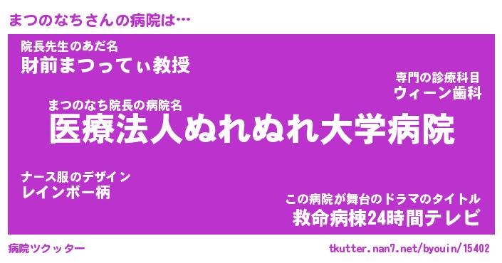 | 男性向けラノベタイトル風あだ名 | 『マツノナチアートオンライン』 |