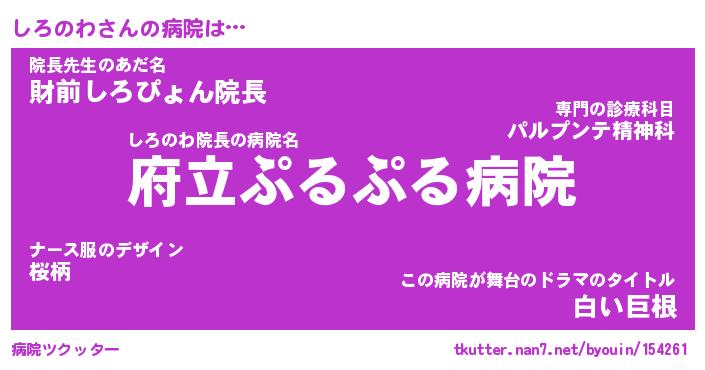 | 意味不明あだ名 | 『ペロリンしろのわ』『永久保存しろのわ』 |