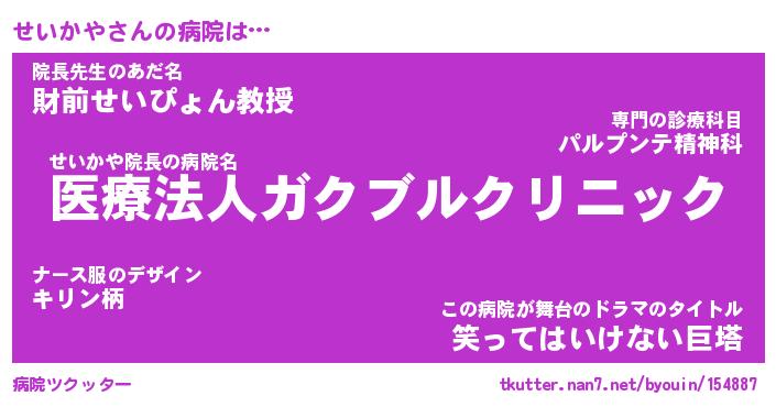 | 意味不明あだ名 | 『ペロリンせいかや』『永久保存せいかや』 |